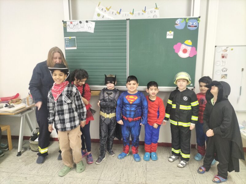 Bienen, Frösche, Prinzessinnen, Feuerwehrmänner und -frauen, Mäuse, Supermänner, Harry Potter: an der MMS war Rosenmontag mächtig viel los. Gefeiert wurde mit Bewegungsparcours in der Turnhalle und mit Action im Halli Galli.