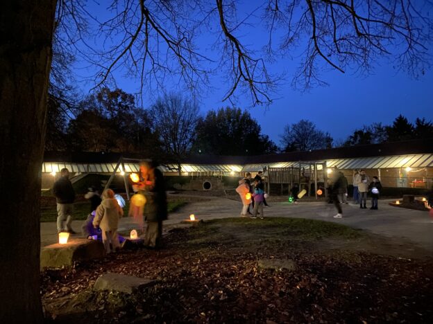 Am Montag, 10.11.25 haben sich viele Schülerinnen und Schüler mit ihren Eltern zum Laternenfest in der Schule getroffen. Es gab Laugengebäck und Apfelpunsch zur Stärkung bevor alle singend mit ihren selbstgebastelten Laternen durch den dunklen Park gezogen sind. Es war ein stimmungsvoller Abend!